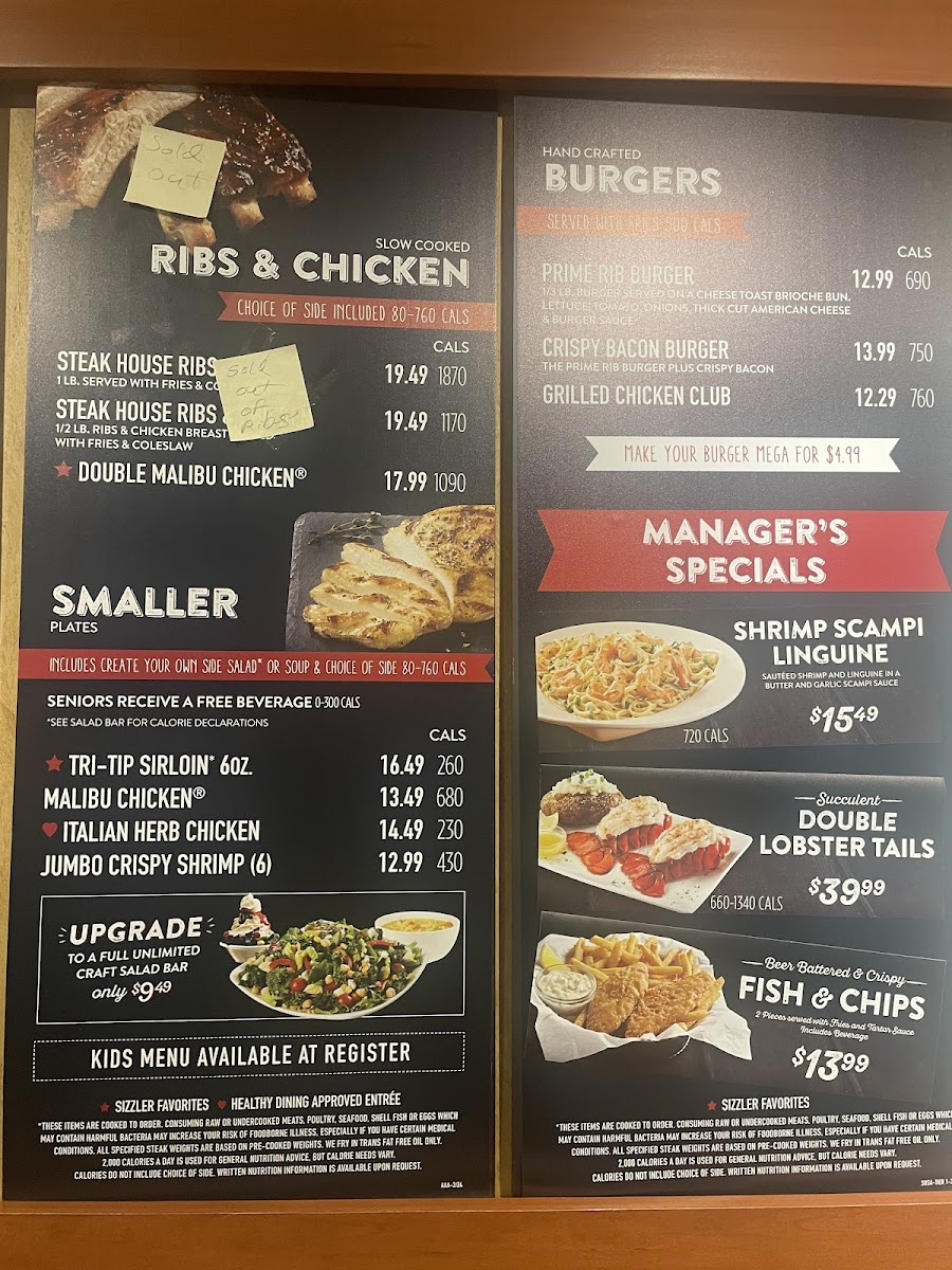 Sizzler - CA 94014 Menu